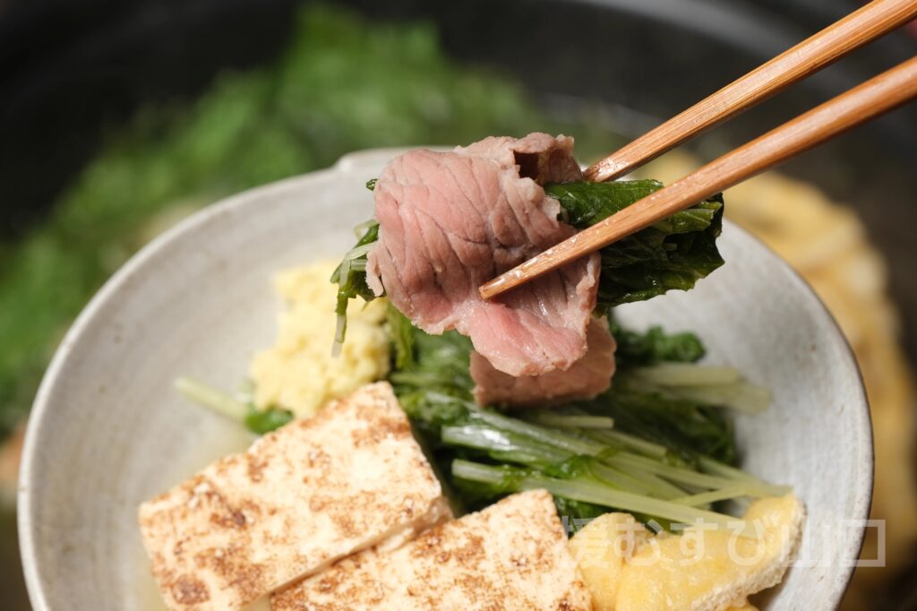 援むすび流のおすすめは、生姜をきかせたしゃぶしゃぶ。