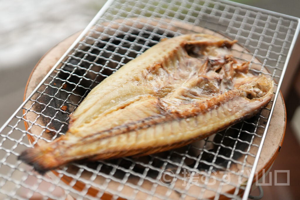 今回の「あまだいの開き」は、萩沖において「釣り」で漁獲されたものを、水揚げされたその日に加工した、鮮度抜群の逸品でした。